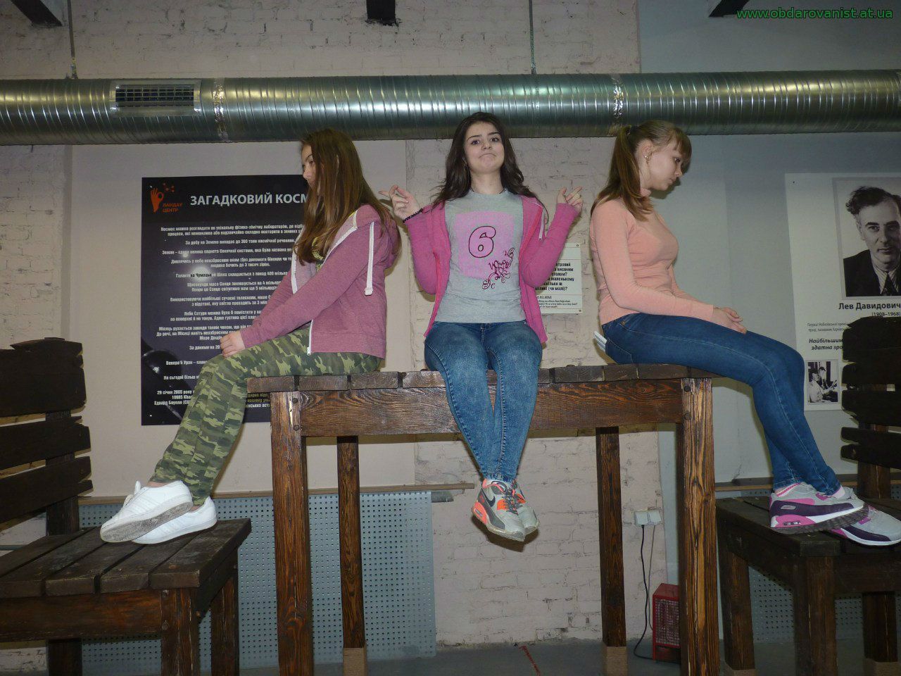 Під час весняних канікул учні 8 – А класу відвідали науково-демонстраційний, навчальний центр імені Лева Ландау, в якому вони побачили різні фізичні досліди, механізми, двигуни, оптичні ілюзії, лазерні установки, голограми, маятники, увігнуті дзеркала, резонатори і т. д. Екскурсія викликала підвищений інтерес серед учнів, так як всі дослідити можна виконувати власними руками, експозиція розташована таким чином, що все можна чіпати, крутити, вертіти та змінювати.