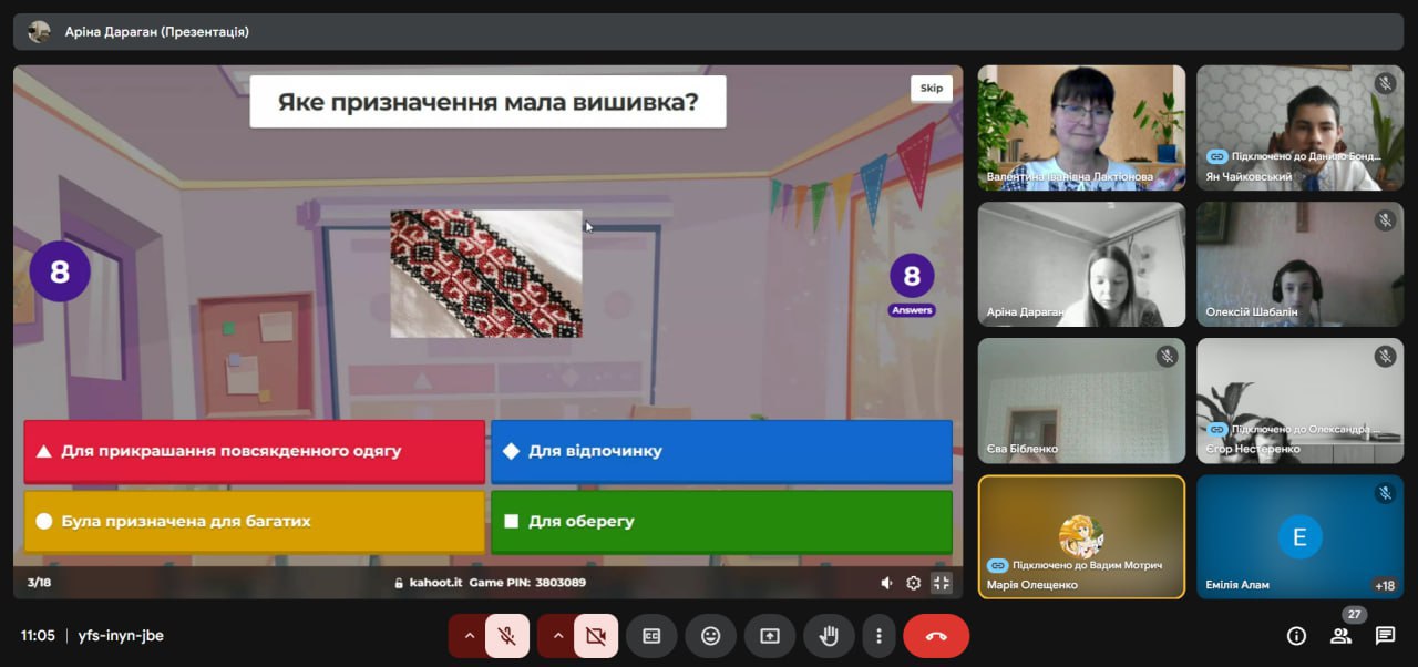 З метою поглиблення знань про національні традиції та вшанування пам’яті предків, в усіх класних колективах було проведено Годину спілкування на тему «Символіка української вишивки: закодовані послання предків». Учні мали змогу дослідити глибокий зміст орнаментів, усвідомити їхню історичну та культурну значущість як невід’ємної частини нашої ідентичності.