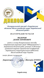 15 листопада 2025 року в онлайн-форматі відбулася Х Обласна учнівська науково-практична конференція Харківського територіального відділення Малої академії наук України. Учні нашого ліцею взяли активну участь у заході.